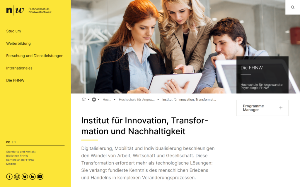 Work at Institute for Innovation, Transformation, and Sustainability at the FHNW (2021-2023)
